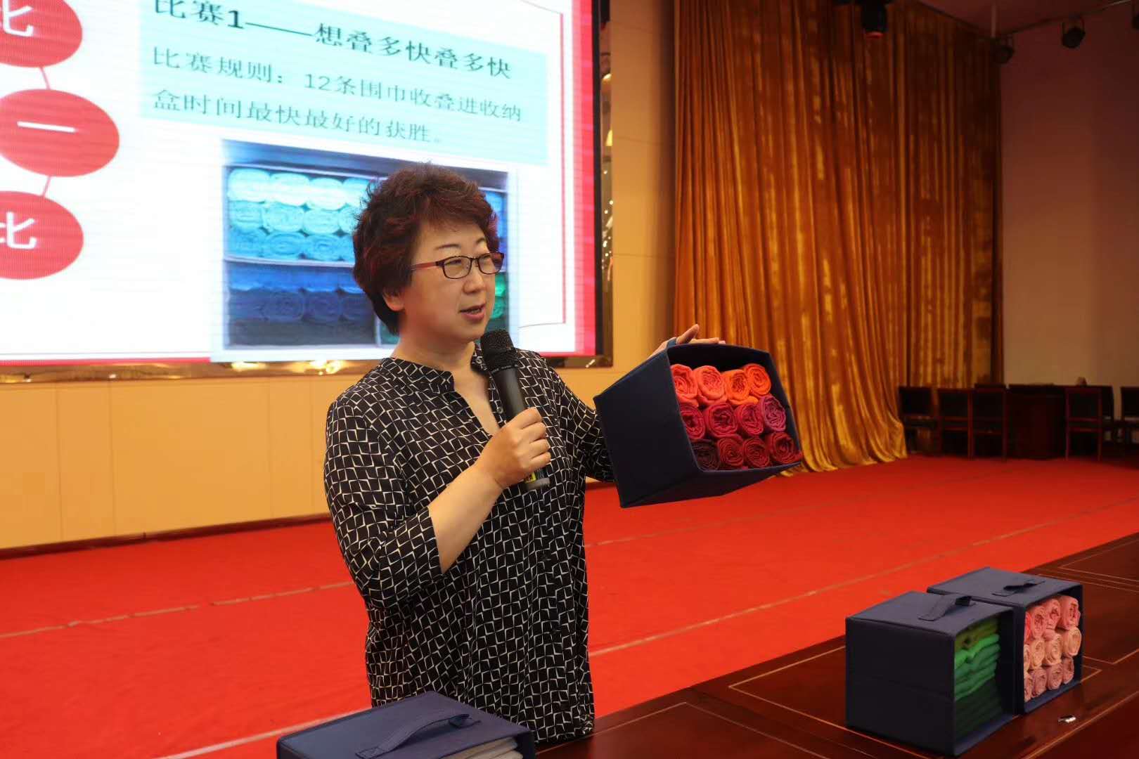 谭老师通过互动、竞赛等方式现场教学,亲身示范,让在座的每个人都学到了一种实用的收纳技巧——三三三快速整理法。孩子们从一开始的手忙脚乱到后来的井然有序,从低效到高效,我们亲眼见证了整理收纳的奇妙作用。收纳让我们的家更美好,让我们的思维更清晰,小小衣橱,蕴藏着大大的智慧。