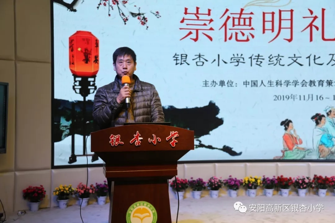 随后,文峰区教育局主任杨海庆为大会致辞,他提到:“长期以来,安阳市的教育工作始终高度重视德育工作。银杏小学在德育工作方面也取得了累累硕果。今天的课程,再次以“崇德明礼、润心正行”为主题,为教师及家长提供这样好的学习机会,更是让德育工作走向深化的切实之举,反映了学校立德树人的决心,以及在德育工作方面孜孜不倦的探索。尤其是中国人生科学学会教育策划专业委员会各位专家的支持与引领,再次带领我们将德育工作推向了新高度。”