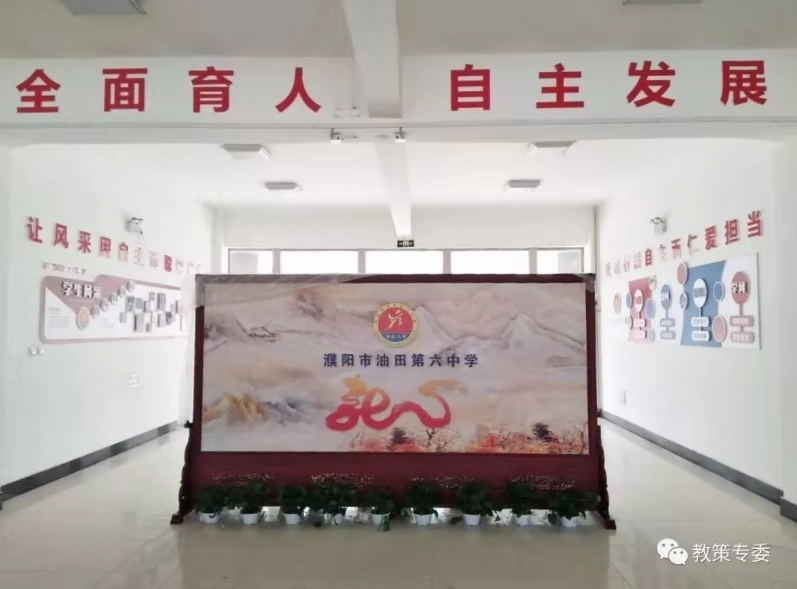 “优美的校园、自强的师生、自主的课堂,定位一流诗意的理想/我们理念创新、规划超前、不断发展/油田六中的昨天是灿烂的,明天会更加辉煌/因为她拥有了自己的味道,让人心醉的文化的味道/心存仁义行方正,腹有诗书气自华/诚朴刚毅砥砺自强/我们终生追寻——自主成长……”校党委书记周敬贺的寄语描绘了濮阳油田六中的发展蓝图。