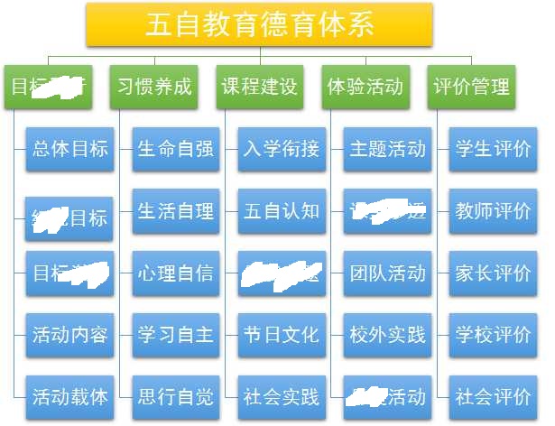 以自强成就高度,以自理成就修养,以自信成就个性, 以自主成就能力,以自觉成就品质,哈尔滨市虹桥第一小学以“五自教育”为主题开展学校主题文化设计,进一步提升学校文化建设的品位,提高学校的内在品格,确立学校的品牌形象。