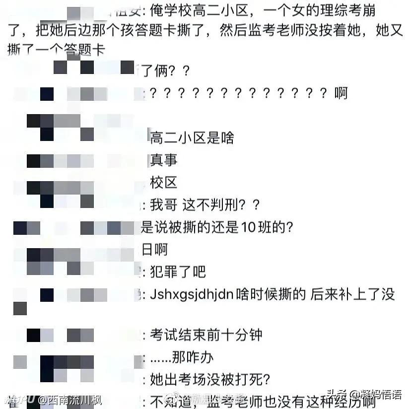 7月8日,河南平顶山一中,一女生在上午考理综时,突然做出意外举动,将同场两位同学的答题卡撕了,事发突然,老师始料不及。据称该学生可能是因为压力太大,导致考试过程中心态出现问题。