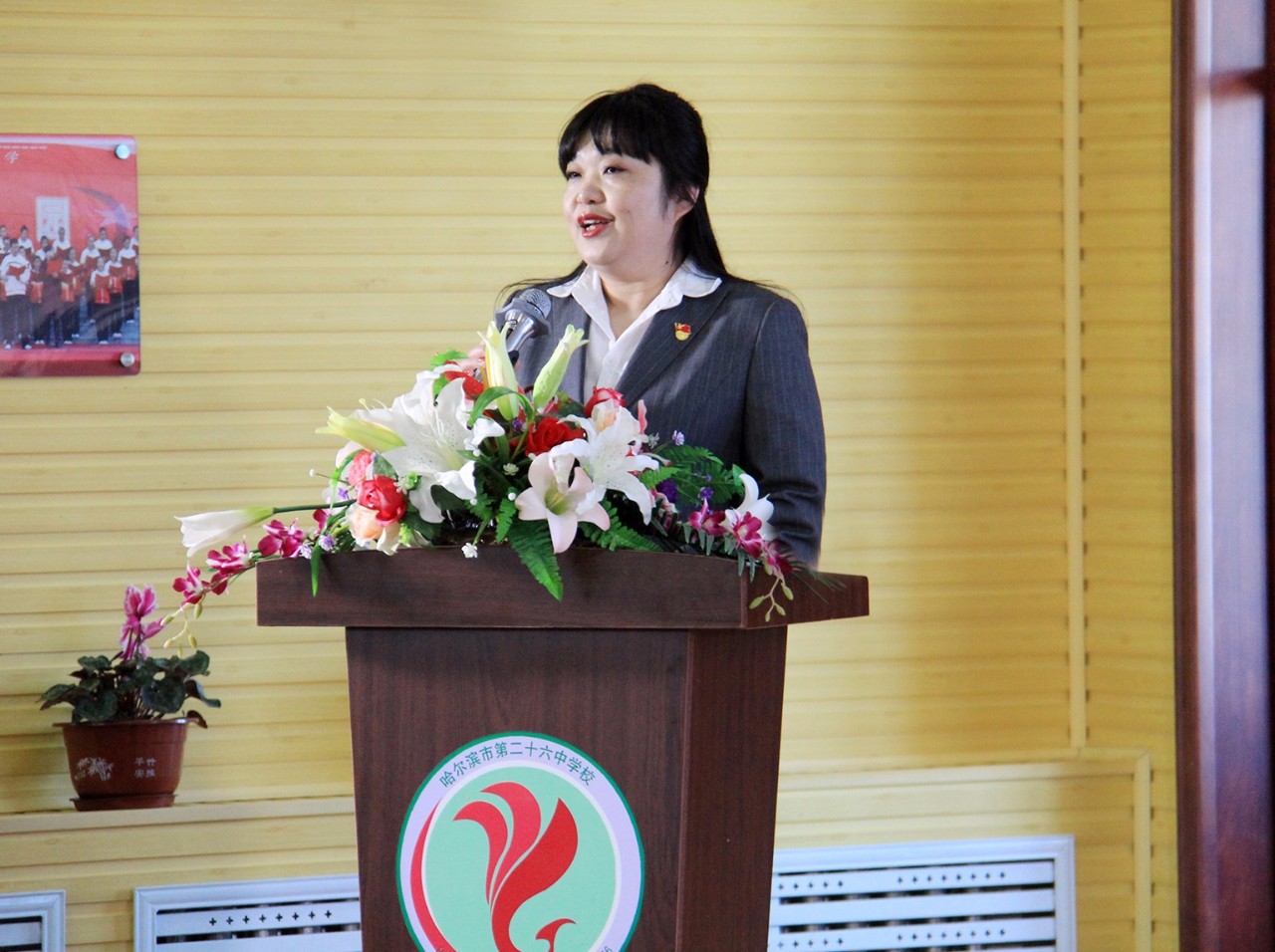 最后,哈尔滨市教研院许剑波副院长做重要讲话,感叹于二十六中近几年发展的变化,并对学校下一步工作的开展提出进一步要求和殷切希望。