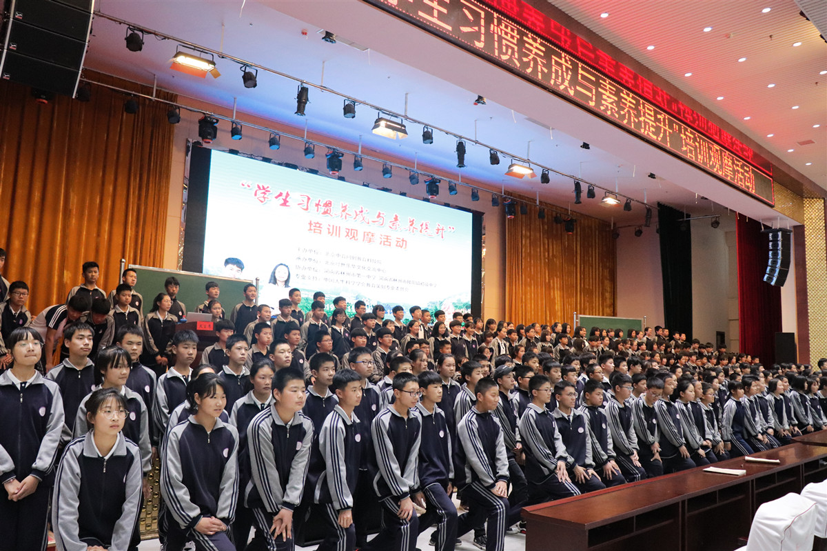 2019年5月12日,“学生习惯养成与素养提升”培训观摩的第二天。时值浅夏五月,春风未退,酷暑未至。蔷薇花正艳,小荷才露头,绿荫浓郁,杨絮飞舞,空气中到处充满着初夏的味道。河南省林州市陵阳镇初级中学师生以及家长近五百人在培训大厅的现场,呐喊助威声一浪高过一浪,欢声笑语充溢着整个会场!