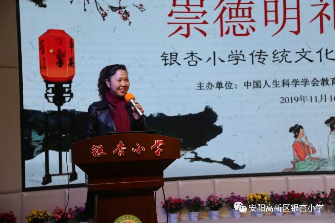 随后,文峰区教育局主任杨海庆为大会致辞,他提到:“长期以来,安阳市的教育工作始终高度重视德育工作。银杏小学在德育工作方面也取得了累累硕果。今天的课程,再次以“崇德明礼、润心正行”为主题,为教师及家长提供这样好的学习机会,更是让德育工作走向深化的切实之举,反映了学校立德树人的决心,以及在德育工作方面孜孜不倦的探索。尤其是中国人生科学学会教育策划专业委员会各位专家的支持与引领,再次带领我们将德育工作推向了新高度。”