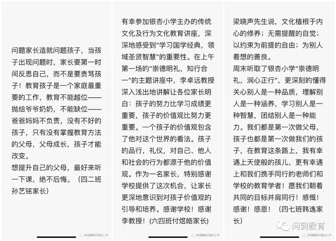与会者对此次活动认识很深刻,纷纷表示要理解、包容、接纳孩子,和孩子同频共振,会通过自己的努力使孩子成为这个世界上最美丽的种子,来改变世界、创造奇迹、放飞梦想。许多家长在课后安耐不住内心的感动于喜悦,纷纷写下自己的感悟与收获。