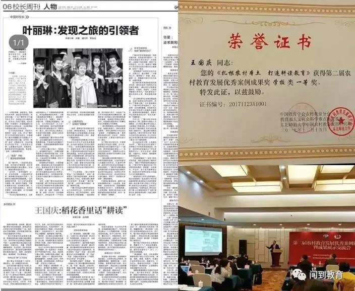 ▲一所距离县城100多公里农村学校,短短几个月多月时间成为耕读教育典范,中国农村教育优秀案例一等奖,校长被推选为“中国首届乡村教育家提名奖”,东北师范大学国培班上授课。2018年10月31日中国教育报以《王国庆:稻花香里话“耕读”》为标题进行了特别报道。