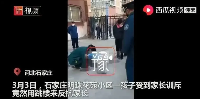 疫情期间,还有很多家长和孩子关系降到了冰点。有的家长因为孩子不好好上网课而气得跳河,有的孩子因为不愿意上网课而被家长赶出家门,甚至跳楼自杀。上个月,石家庄某小区一个正在读五年级的男孩,因为上网课途中玩游戏,被家长大声训斥,便一气之下跳楼自杀了。等家长跑到楼下时,孩子已瘫倒血泊中,孩子父母大声痛哭,“我不该骂你的,我以后再也不逼你学习了,你一定要好好的……”